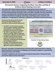 Don’t miss this opportunity to learn how and why the International Dyslexia Association has released a NEW definition of dyslexia from steering committee members, Dr. Charley Haynes and Dr. Hugh Catts. Sign up to reserve your spot to attend 7:00-8:30 EST, Wednesday, Dec. 10, 2025.